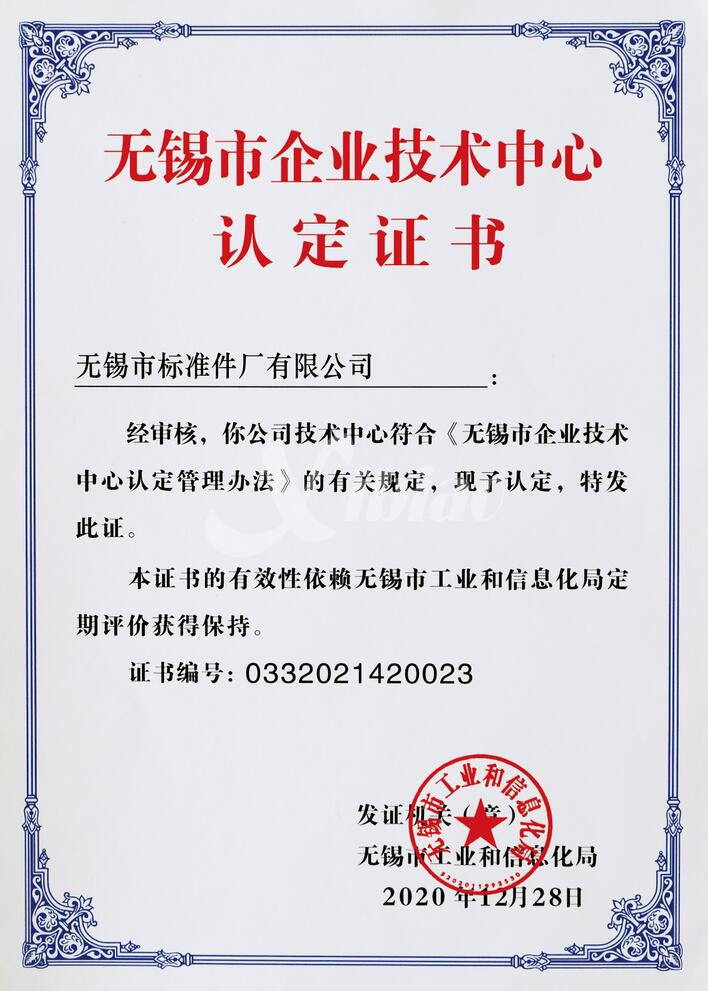 2020年12月公司获评“无锡市企业技术中心”