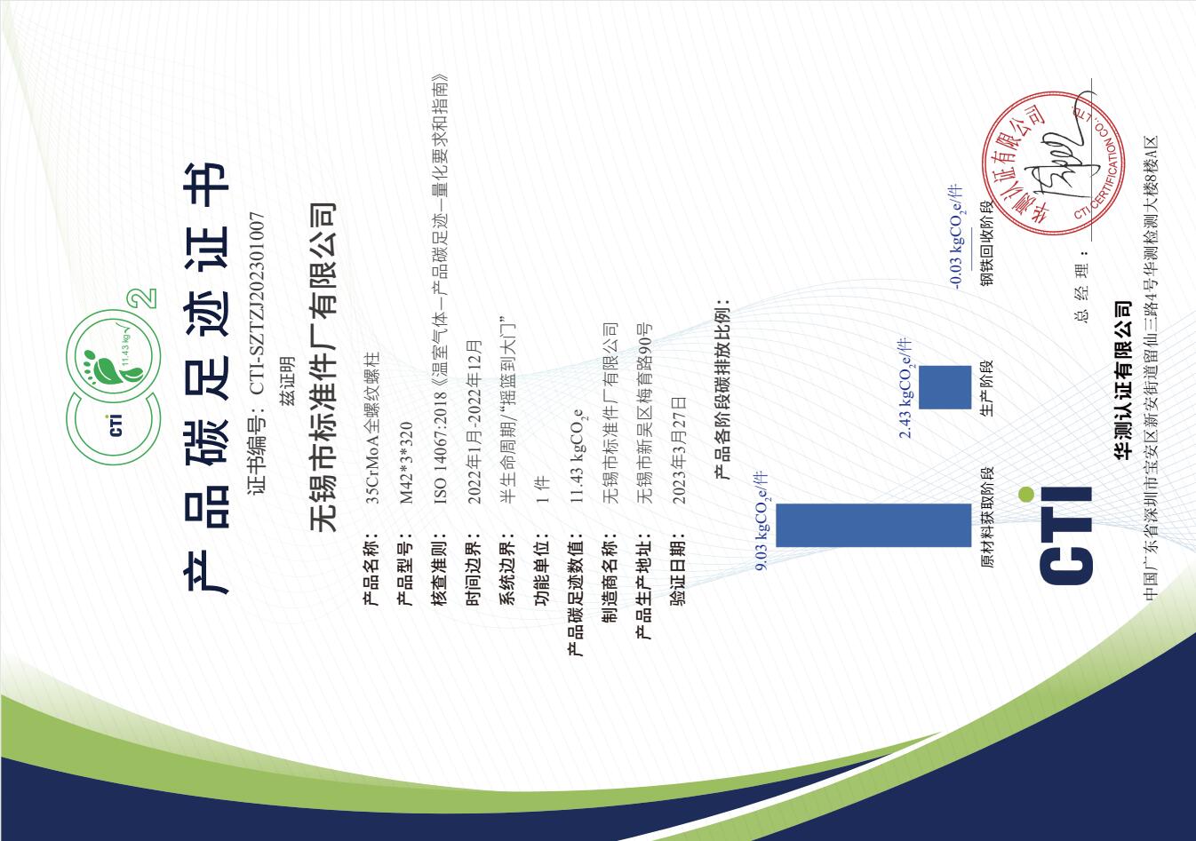 热烈庆祝公司荣获:“产品碳足迹证书”