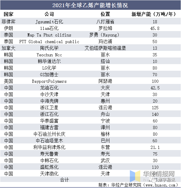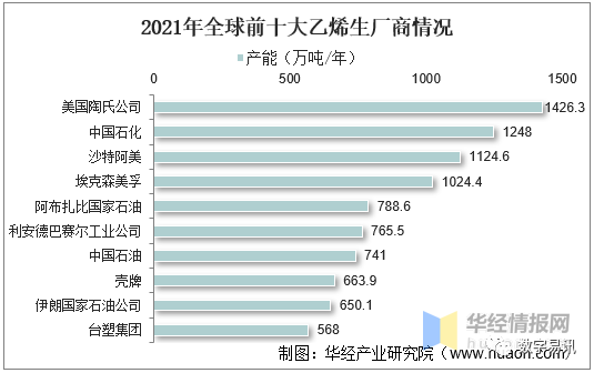 2021年全球前十大乙烯生厂商情况